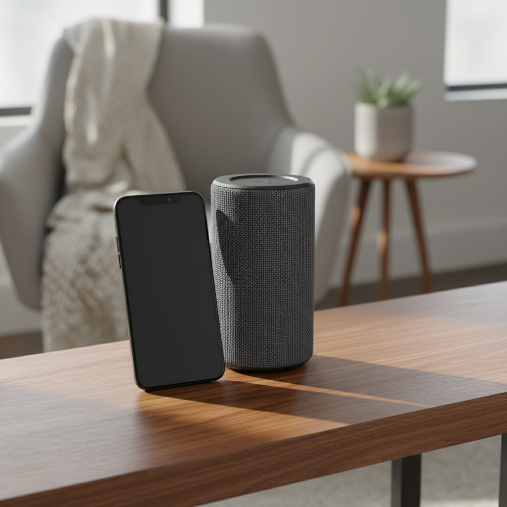 Describe the atmosphere you want — "Sunday morning, warm, acoustic, slow" — and Puana matches tracks to that feeling. No scrolling through playlists. No guessing which genre fits your space at 2pm vs. 7pm. Tell the system what you want. It plays it.